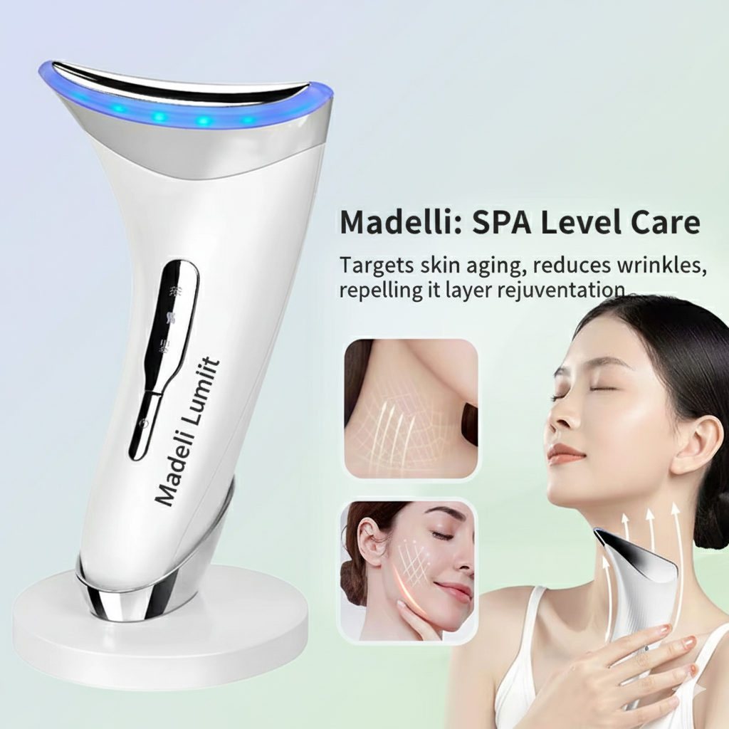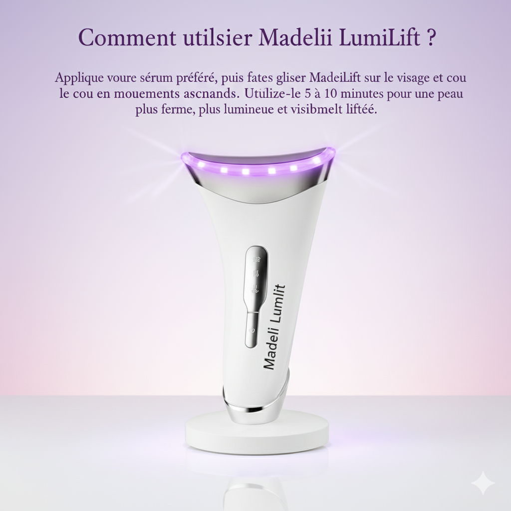 Grâce à la technologie LED et aux micro-vibrations, Madelii LumiLift offre des résultats prouvés sur la fermeté, la luminosité et la douceur de la peau.